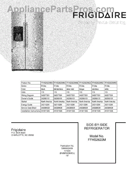 Parts for Frigidaire FFHS2622MH2: 01 - Cover Parts