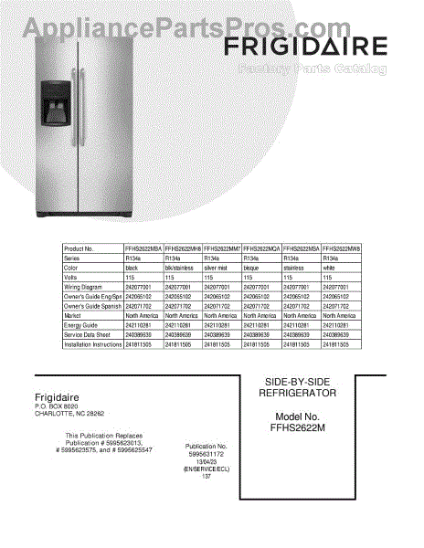 Parts for Frigidaire FFHS2622MH8: 01 - Cover Parts