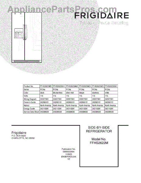 Parts for Frigidaire FFHS2622MM1: 01 - Cover Parts