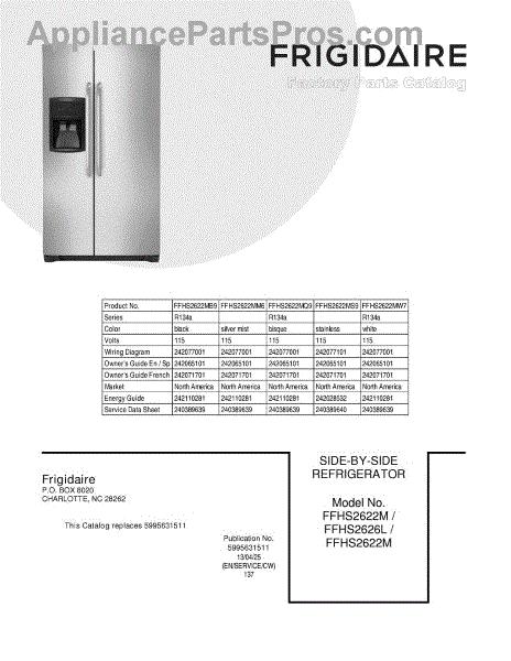 Parts for Frigidaire FFHS2622MM6: 01 - Cover Parts