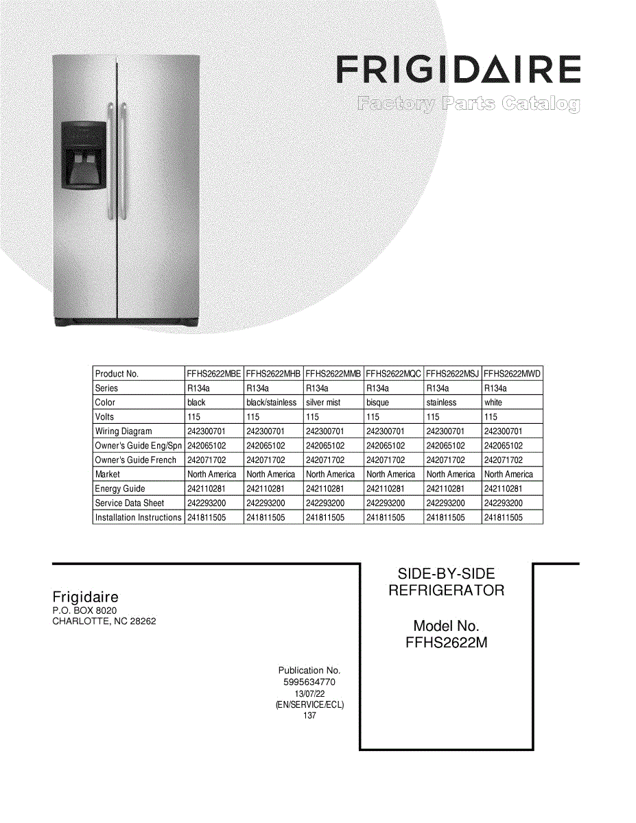 Parts for Frigidaire FFHS2622MMB: 01 - Cover Parts