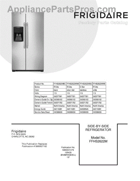 Parts for Frigidaire FFHS2622MWB: 01 - Cover Parts