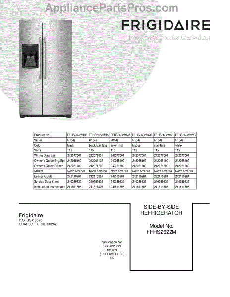 Parts for Frigidaire FFHS2622MWC: 01 - Cover Parts