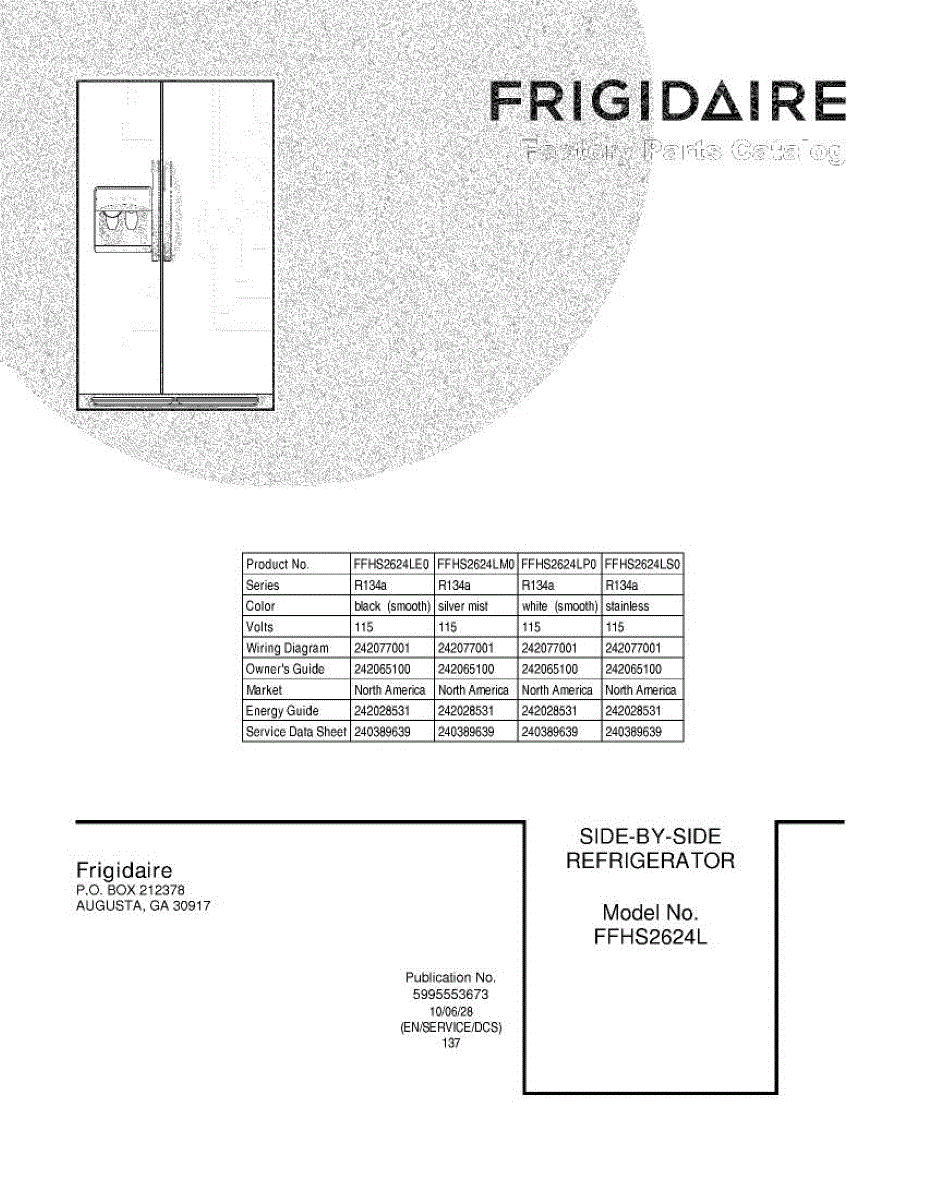 Parts for Frigidaire FFHS2624LS0: 01 - Cover Parts