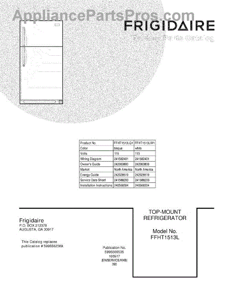 Parts for Frigidaire FFHT1513LQ1: 01 - Cover Parts