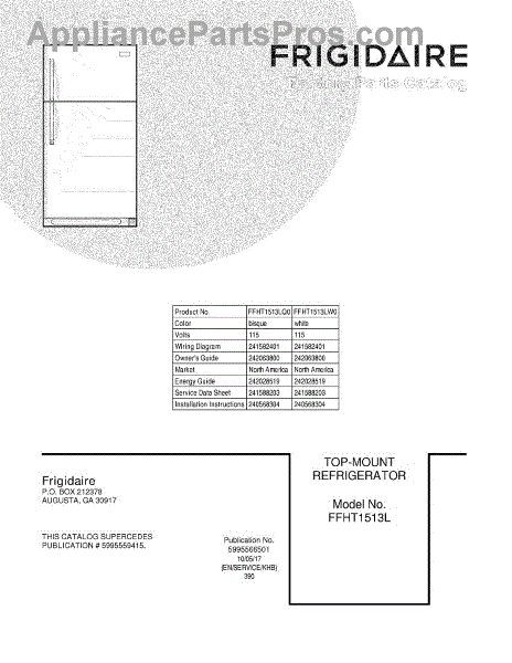 Parts for Frigidaire FFHT1513LW0: 01 - Cover Parts