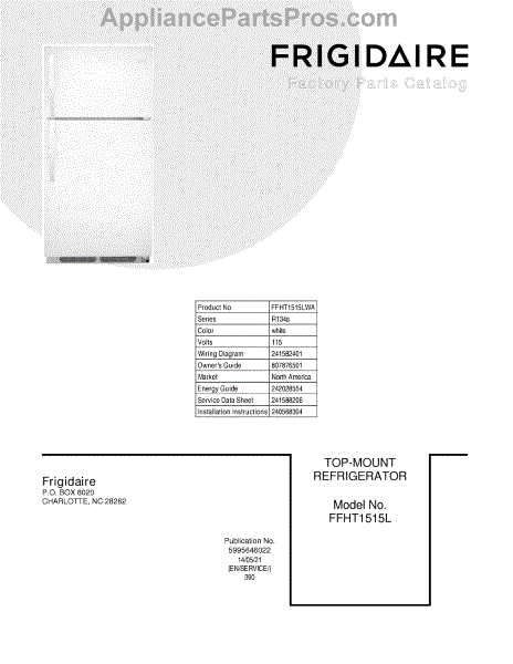 Parts for Frigidaire FFHT1515LWA: 01 - Cover Parts