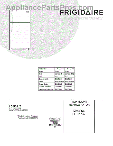 Parts for Frigidaire FFHT1725LK6: 01 - Cover Parts