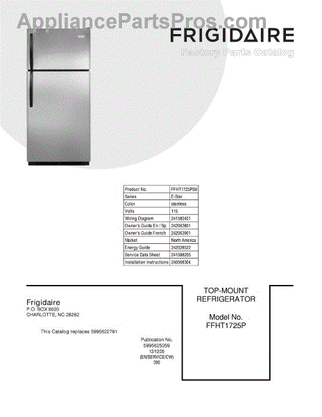 Parts for Frigidaire FFHT1725PS0: 01 - Cover Parts