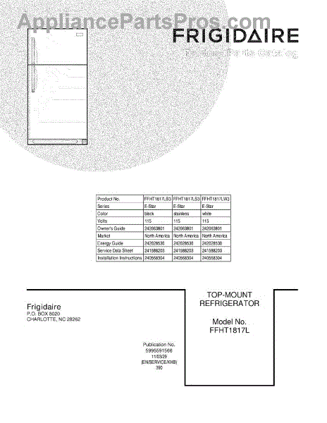 Parts for Frigidaire FFHT1817LB3: 01 - Cover Parts