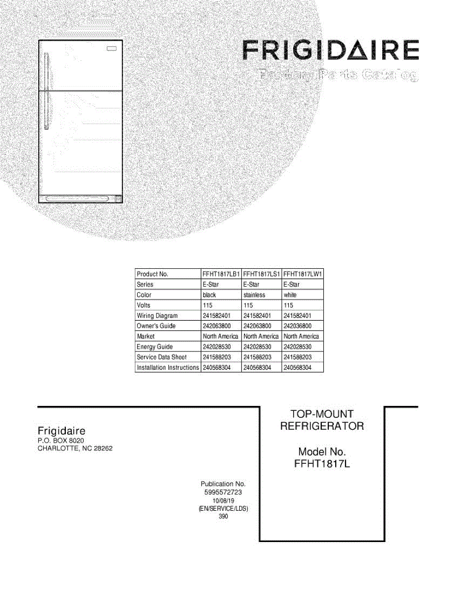 Parts for Frigidaire FFHT1817LS1: 01 - Cover Parts