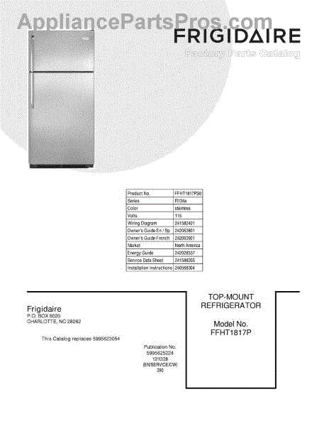 Parts for Frigidaire FFHT1817PS0: 01 - Cover Parts