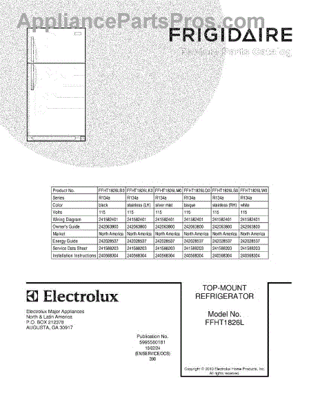 Parts for Frigidaire FFHT1826LM0: 01 - Cover Parts