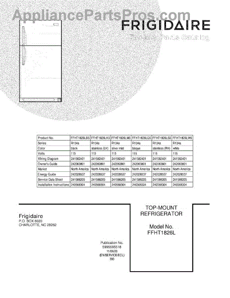 Parts for Frigidaire FFHT1826LW5: 01 - Cover Parts