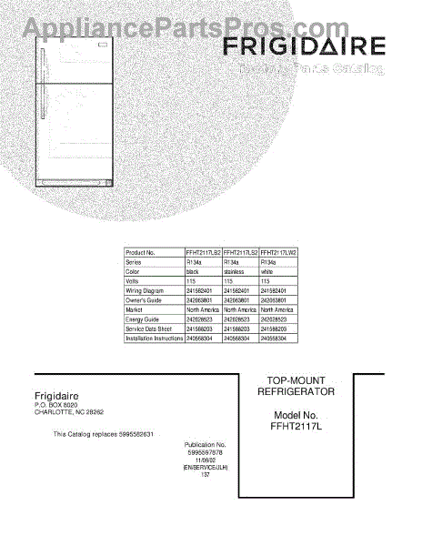 Parts for Frigidaire FFHT2117LS2: 01 - Cover Parts