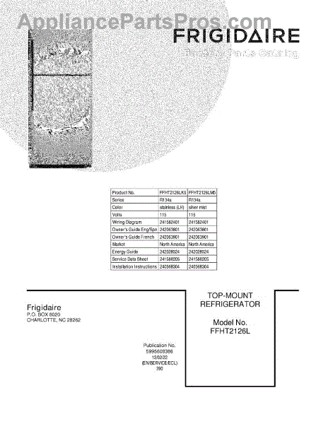 Parts for Frigidaire FFHT2126LM5: 01 - Cover Parts