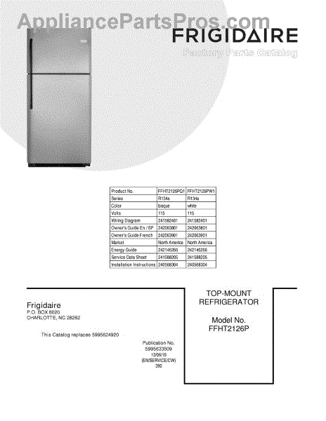 Parts for Frigidaire FFHT2126PQ1: 01 - Cover Parts