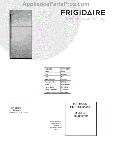 Parts for Frigidaire FFHT2126PS3: 01 - Cover Parts