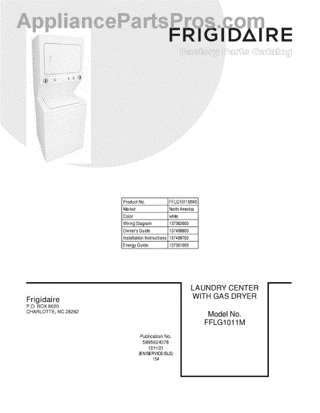 Parts for Frigidaire FFLG1011MW0: 01 - Cover Parts