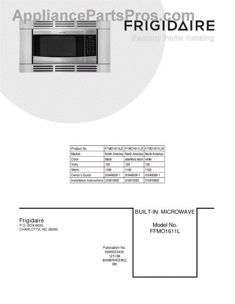 Parts for Frigidaire FFMO1611LW: 01 - Cover Parts