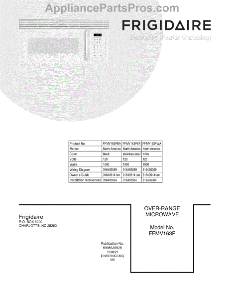 Parts for Frigidaire FFMV163PWA: 01 - Cover Parts