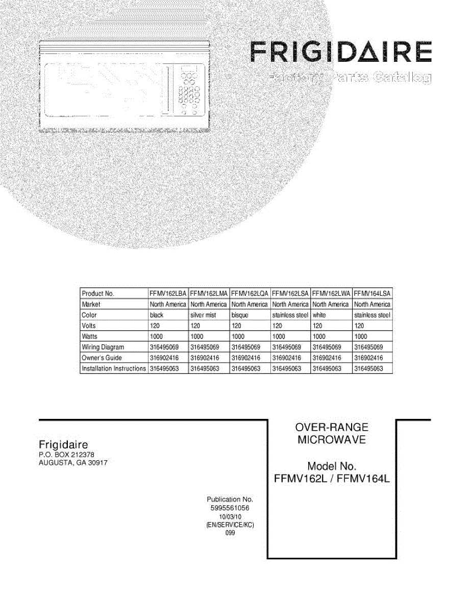 Parts for Frigidaire FFMV164LSA: 01 - Cover Parts