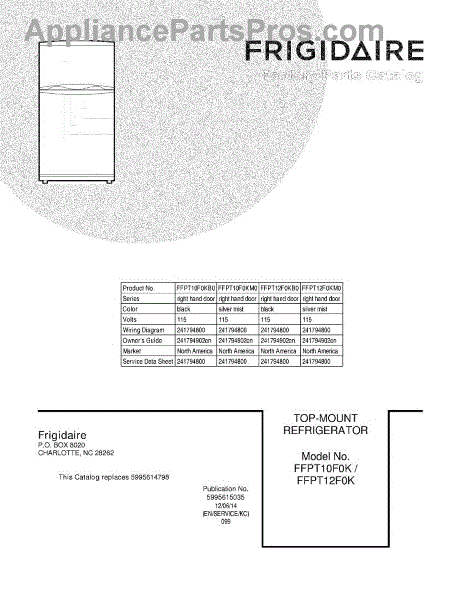Parts for Frigidaire FFPT10F0KM0: 01 - Cover Parts