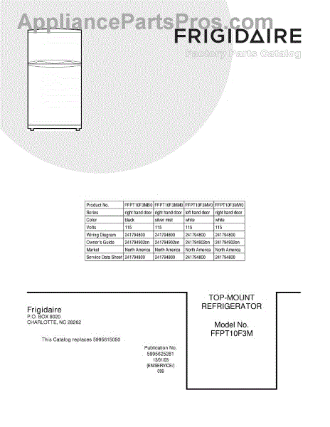 Parts for Frigidaire FFPT10F3MW0: 01 - Cover Parts