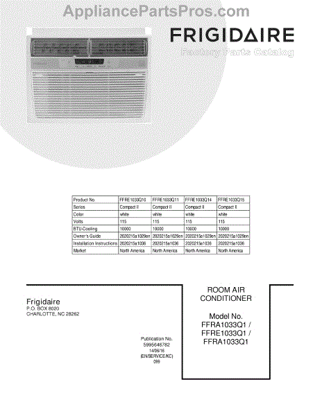 Parts for Frigidaire FFRE1033Q10: 01 - Cover Parts