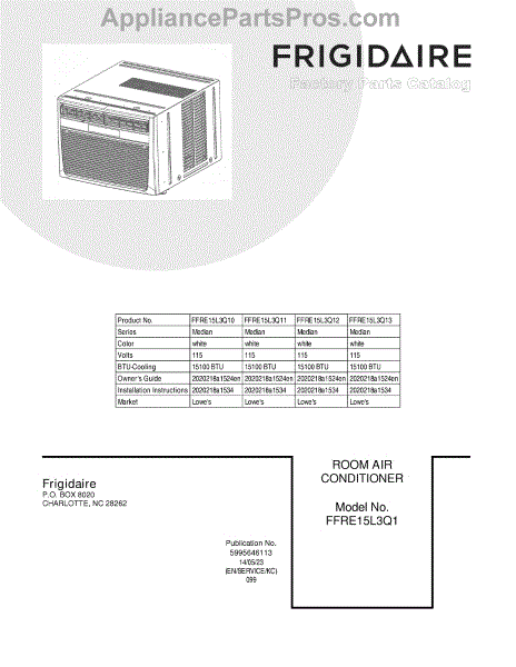 Parts for Frigidaire FFRE15L3Q12: 01 - Cover Parts