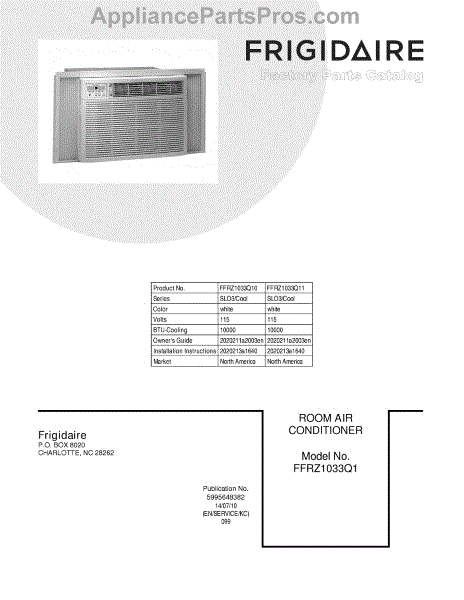 Frigidaire Room Air Conditioner Parts