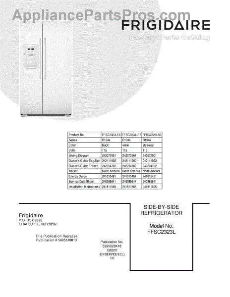 Parts for Frigidaire FFSC2323LE6: 01 - Cover Parts