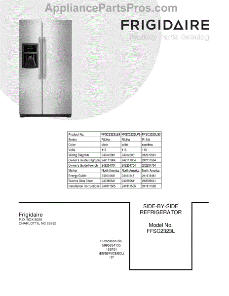 Parts for Frigidaire FFSC2323LE9: 01 - Cover Parts