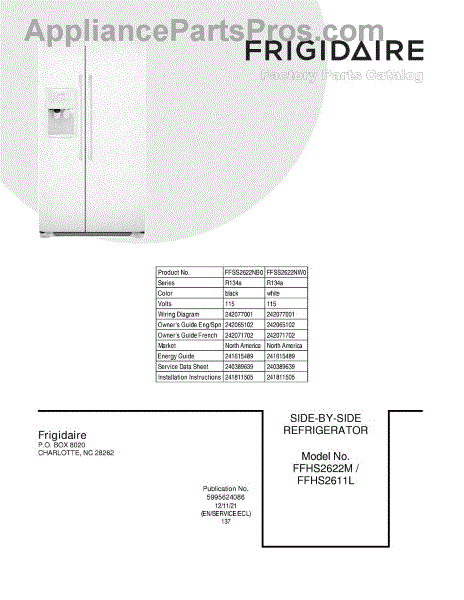 Parts for Frigidaire FFSS2622NB0: 01 - Cover Parts