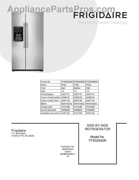 Parts for Frigidaire FFSS2622NS2: 01 - Cover Parts