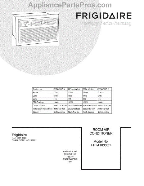 Parts for Frigidaire FFTA1033Q12: 01 - Cover Parts
