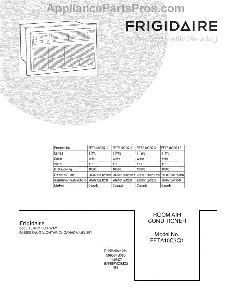 Parts for Frigidaire FFTA10C3Q11: 01 - Cover Parts