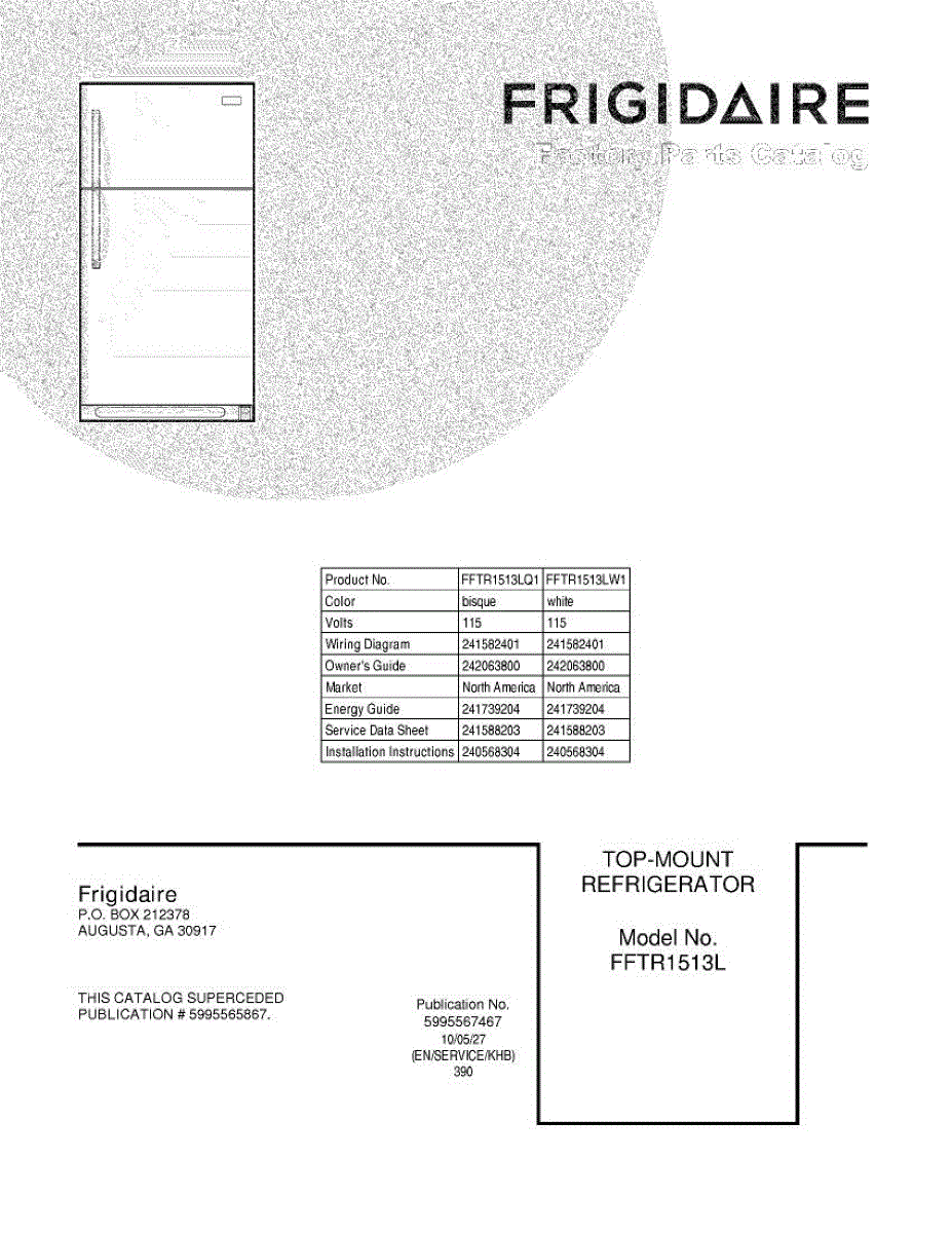 Parts for Frigidaire FFTR1513LW1: 01 - Cover Parts