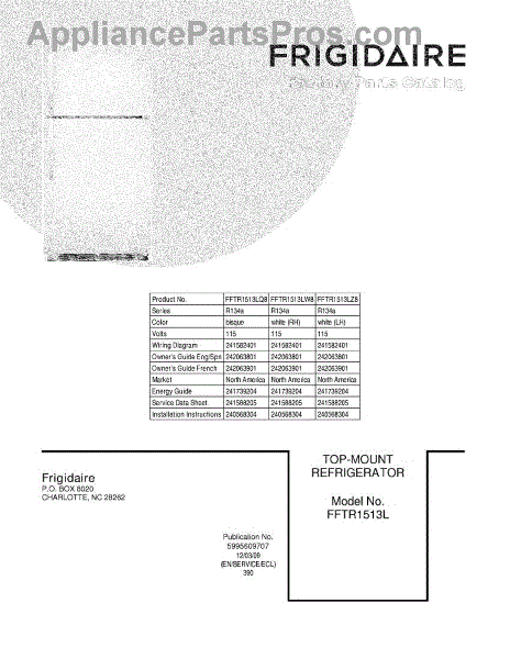 Parts for Frigidaire FFTR1513LW8: 01 - Cover Parts