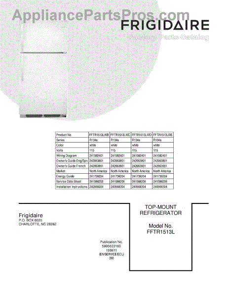 Parts for Frigidaire FFTR1513LWC: 01 - Cover Parts