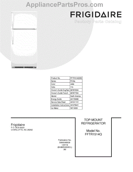 Parts for Frigidaire FFTR1514QW0: 01 - Cover Parts