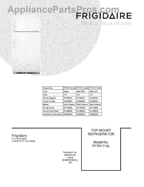 Parts for Frigidaire FFTR1713LZ8: 01 - Cover Parts