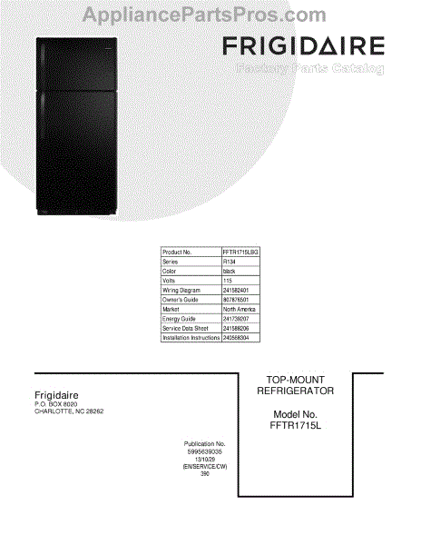 Parts for Frigidaire FFTR1715LBG: 01 - Cover Parts