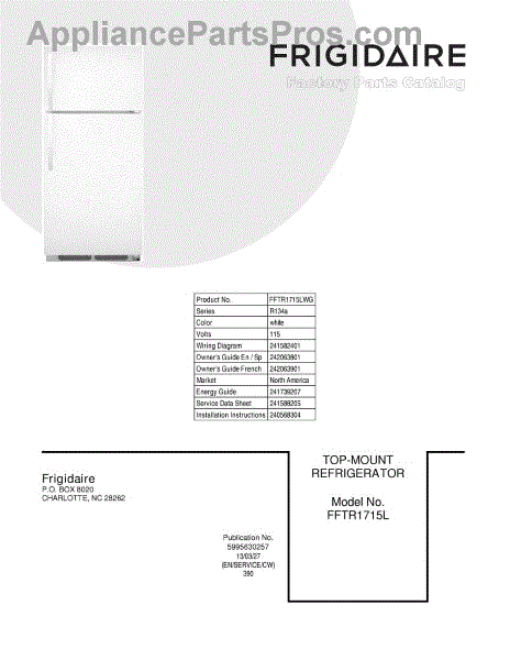 Parts for FFTR1715LWG