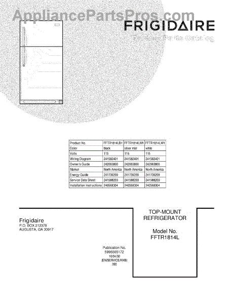 Parts for Frigidaire FFTR1814LB1: 01 - Cover Parts