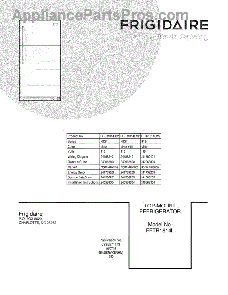 Parts for Frigidaire FFTR1814LW2: 01 - Cover Parts