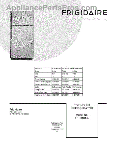 Parts for Frigidaire FFTR1814LW9: 01 - Cover Parts