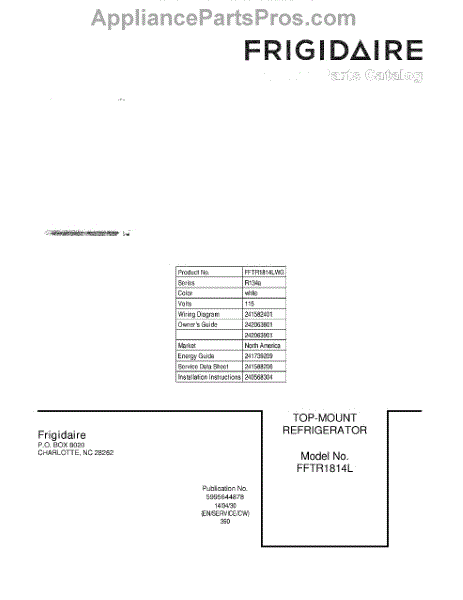 Parts for Frigidaire FFTR1814LWG: 01 - Cover Parts