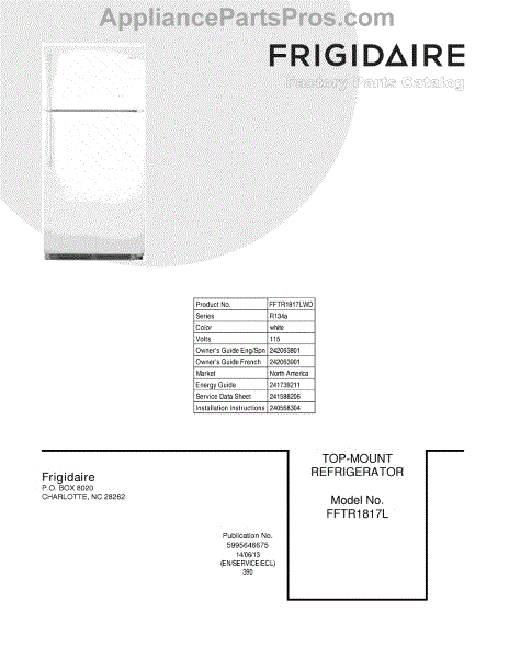 Parts for Frigidaire FFTR1817LWD: 01 - Cover Parts