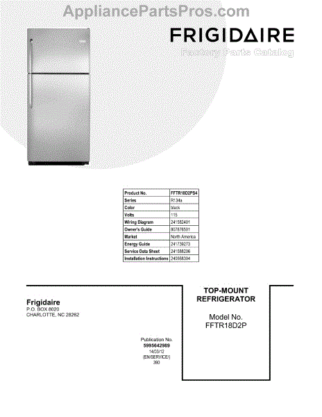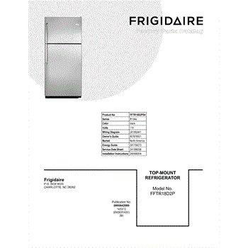 Parts for Frigidaire FFTR18D2PS4: 01 - Cover Parts